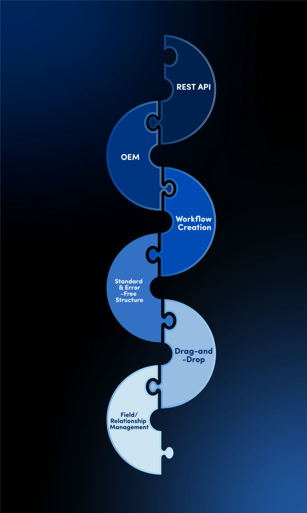 In traditional software systems, form, module, field, workflow and relationship definitions were usually done on separate screens, through complex menus and independent data models. This fragmented structure both wasted time and disrupted process integrity.